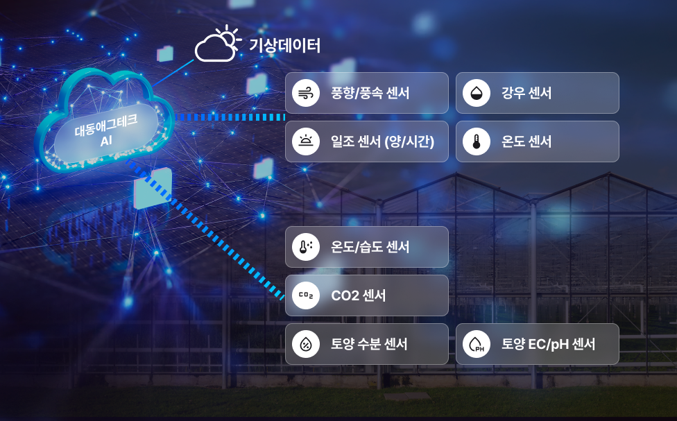 전주기 작물 데이터를 기반으로 고객의 온실 환경을 진단하고, 맛·성분·생산성을 극대화할 수 있는 최적의 생육 조건을 제시하는 맞춤형 재배 솔루션을 구독형 서비스로 제공합니다.